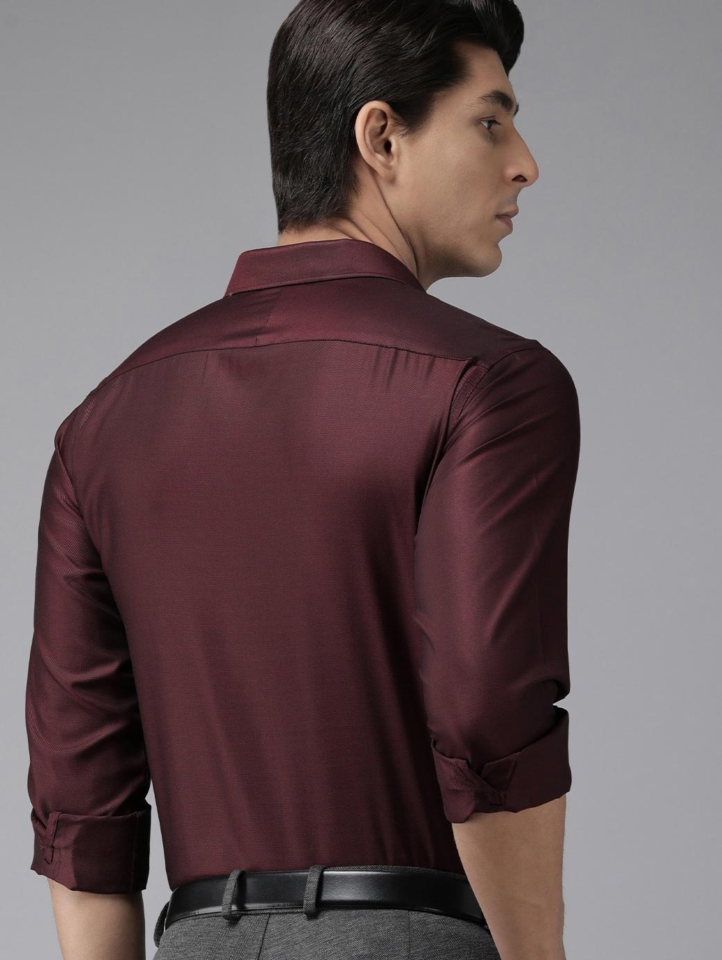Men Burgundy Self Design Custom Fit Formal Shirt