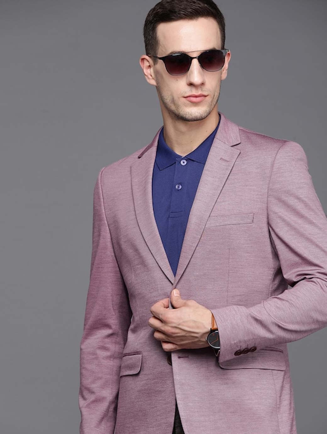 "Men Purple Melange Effect Neo Slim Fit Formal Blazer "