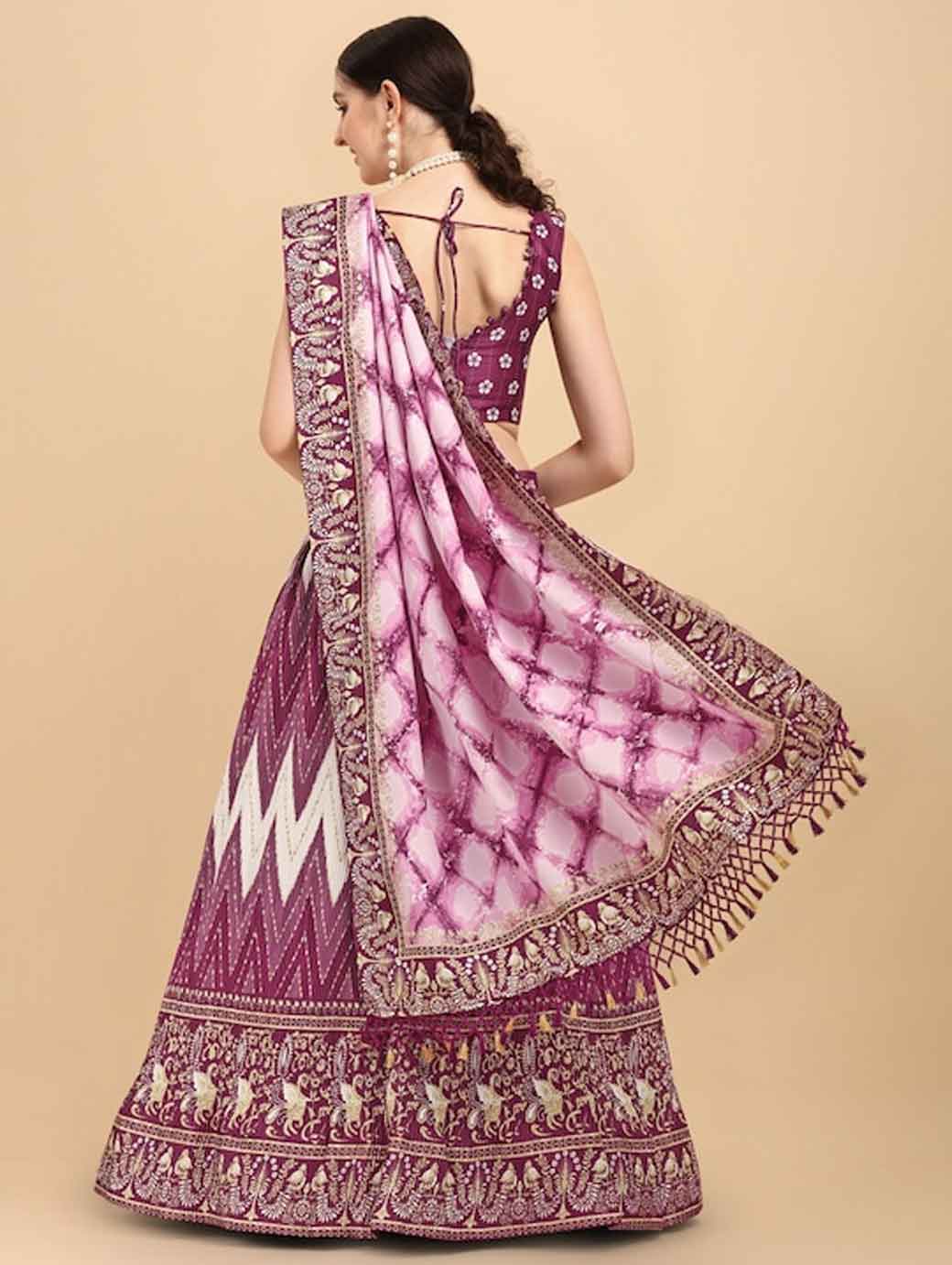 Purple and white printed lehenga choli with dupatta,