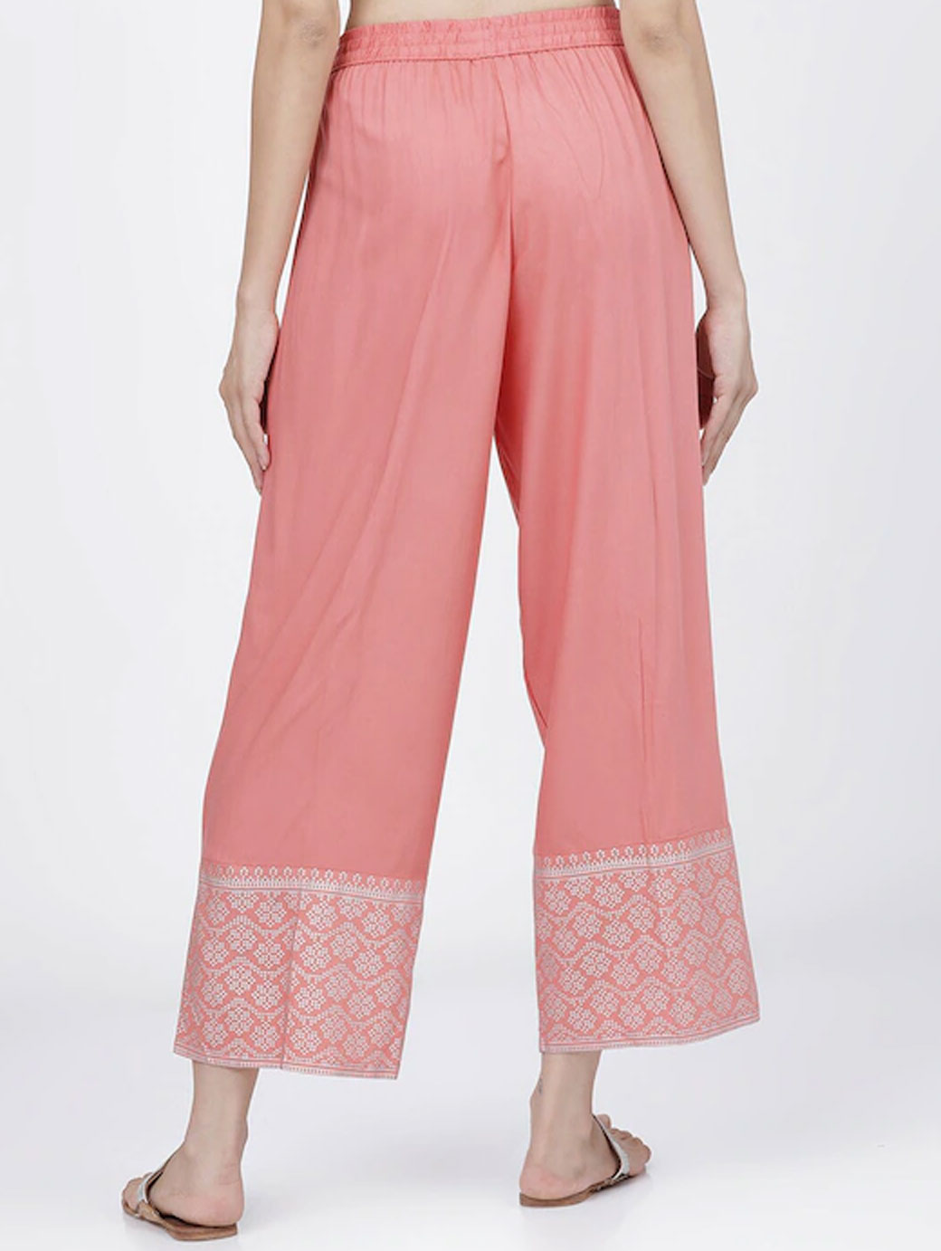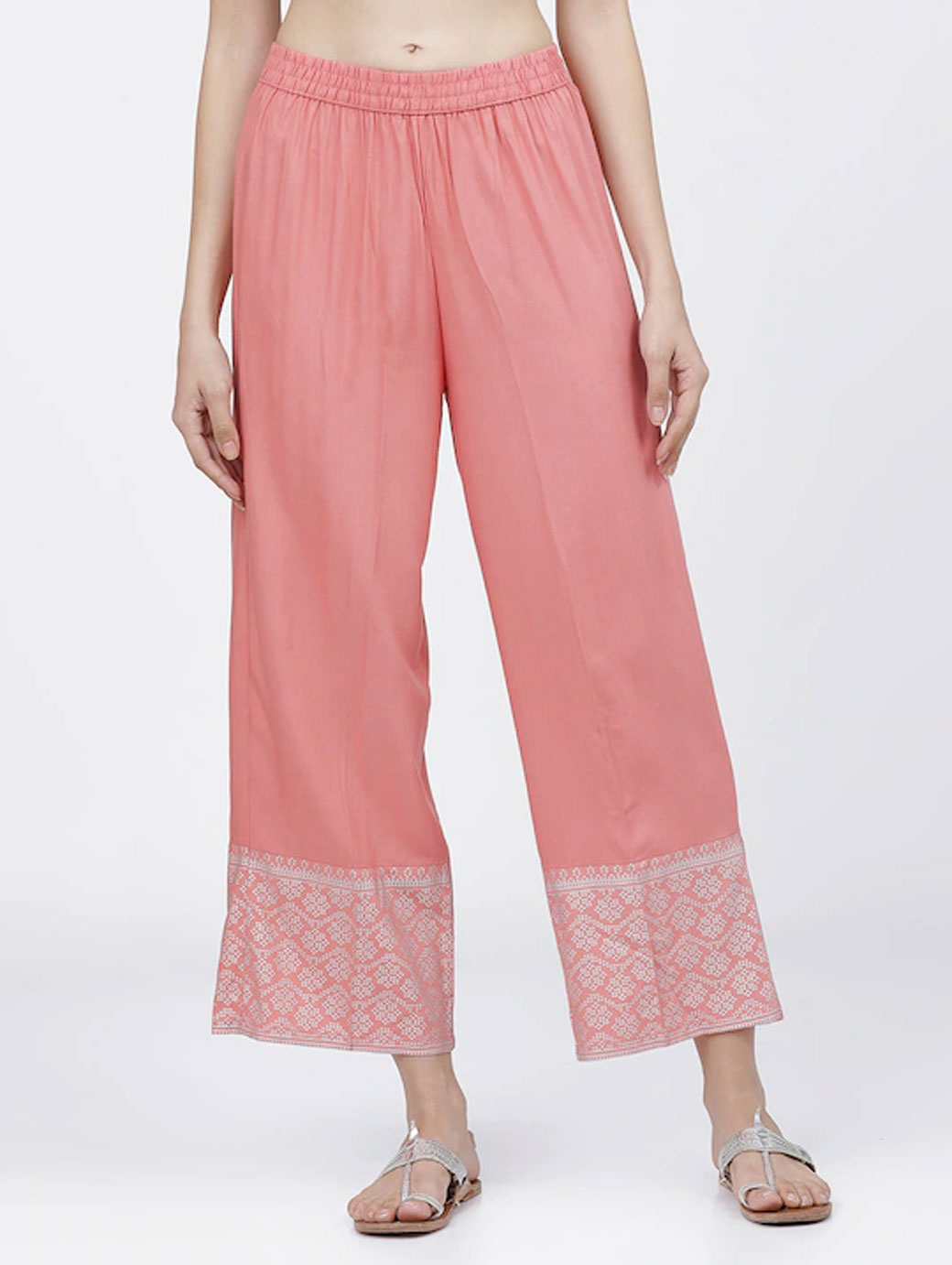 Coral and silver-toned woven palazzos