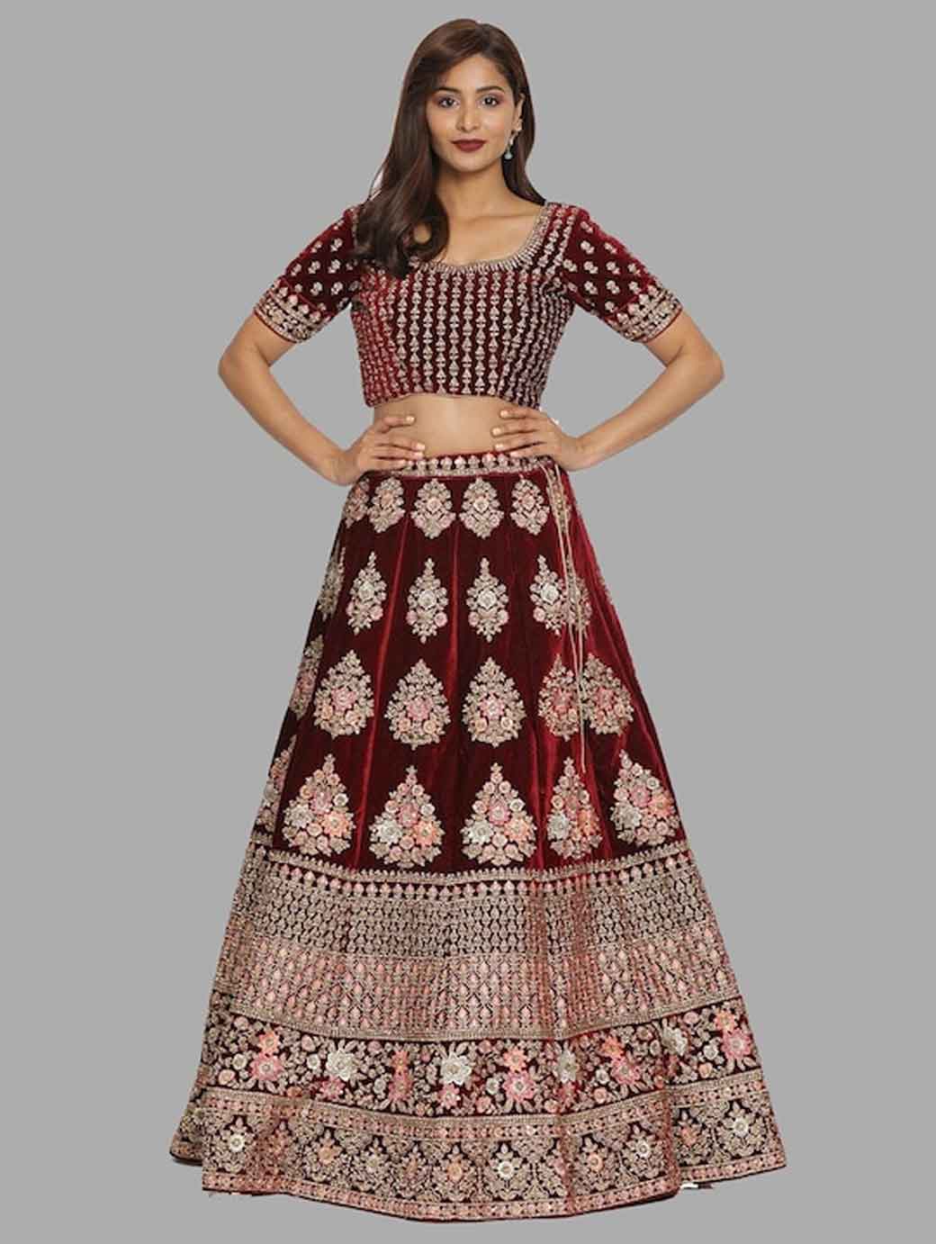 Beige and pink printed ready to wear lehenga, has slip-on closure, flared hem