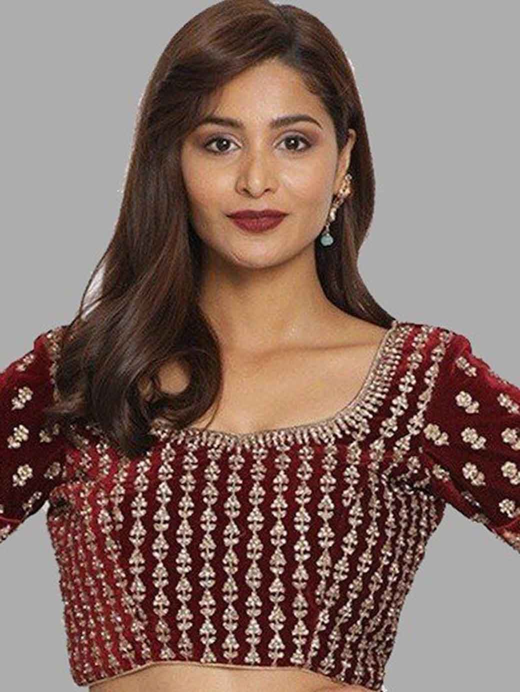Beige and pink printed ready to wear blouse, has a v-neck, sleeveless, zip closure