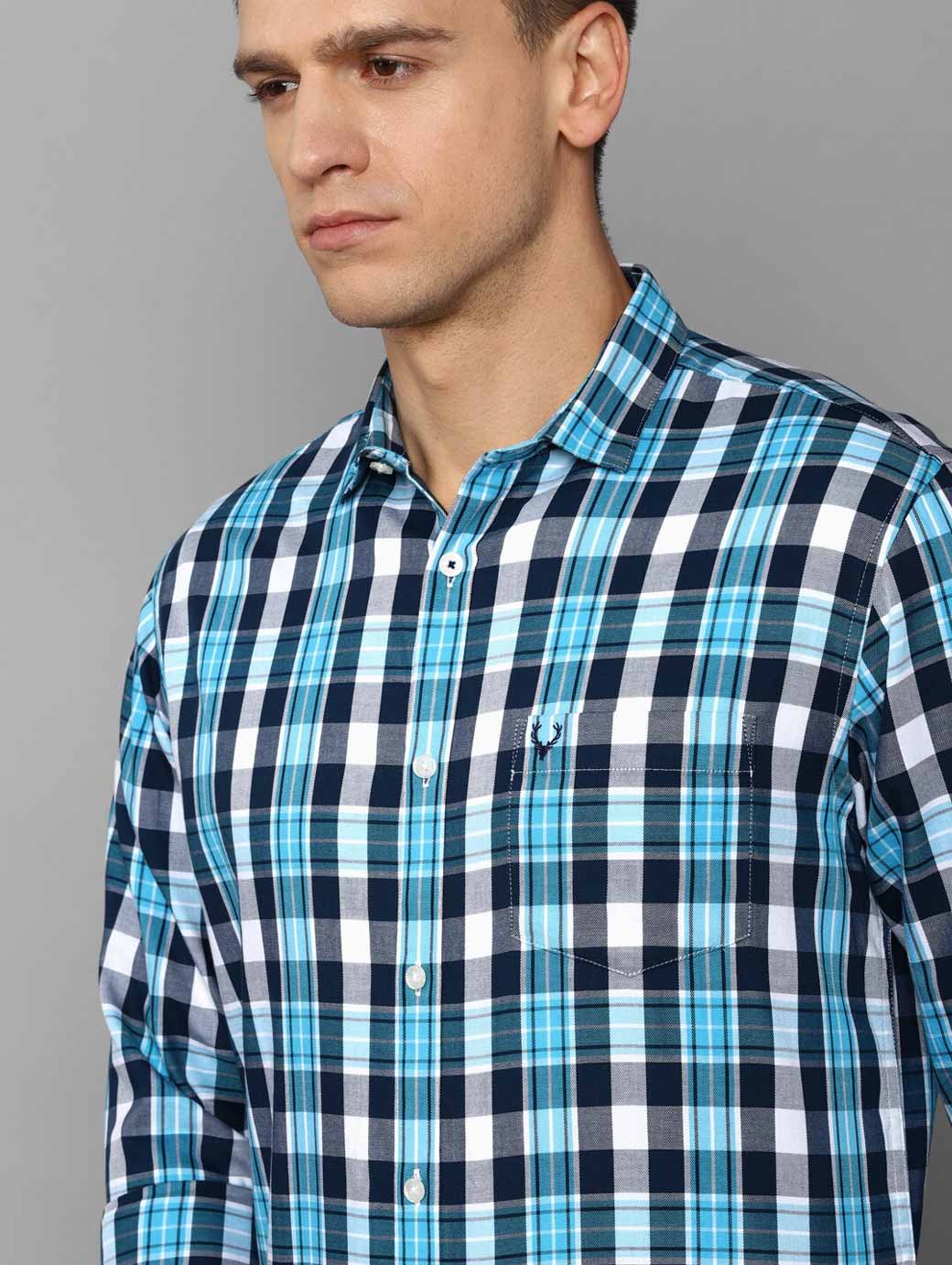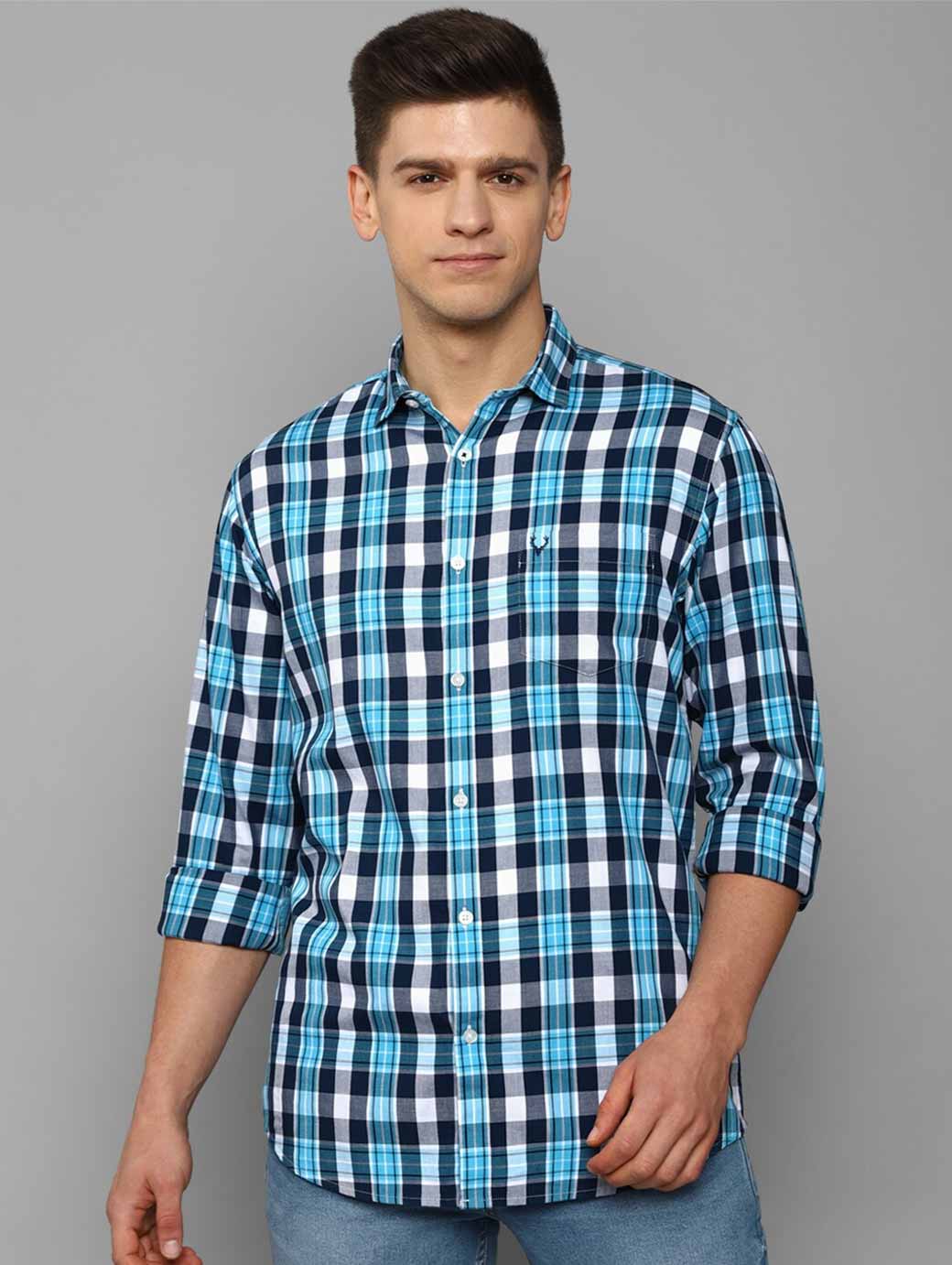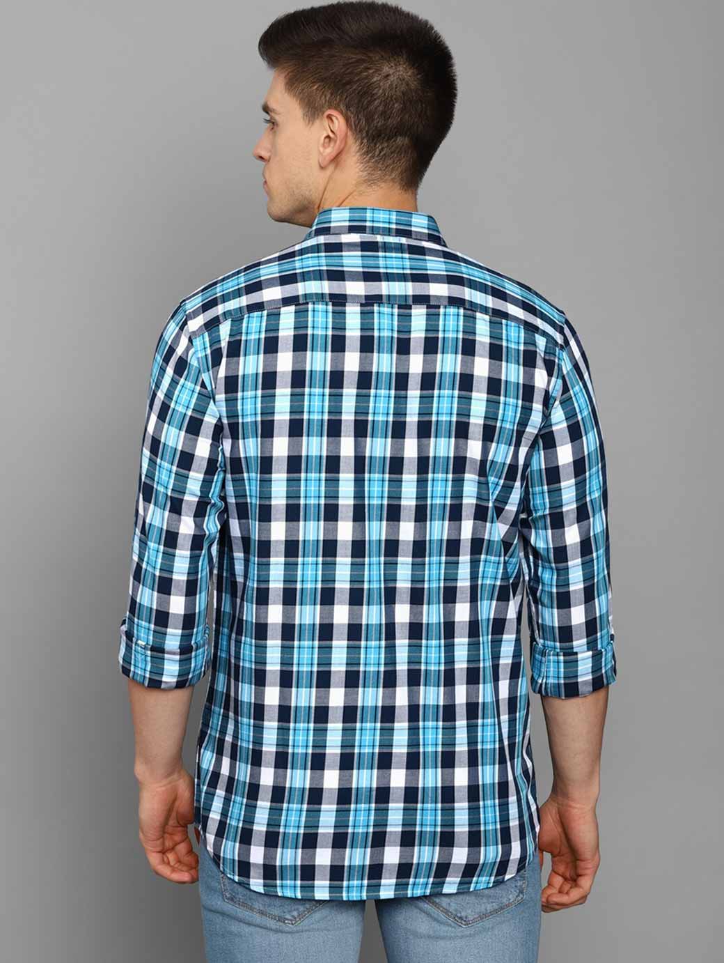 Blue tartan checks checked opaque Casual shirt ,has a spread collar, button placket, long regular sleeves, curved hem