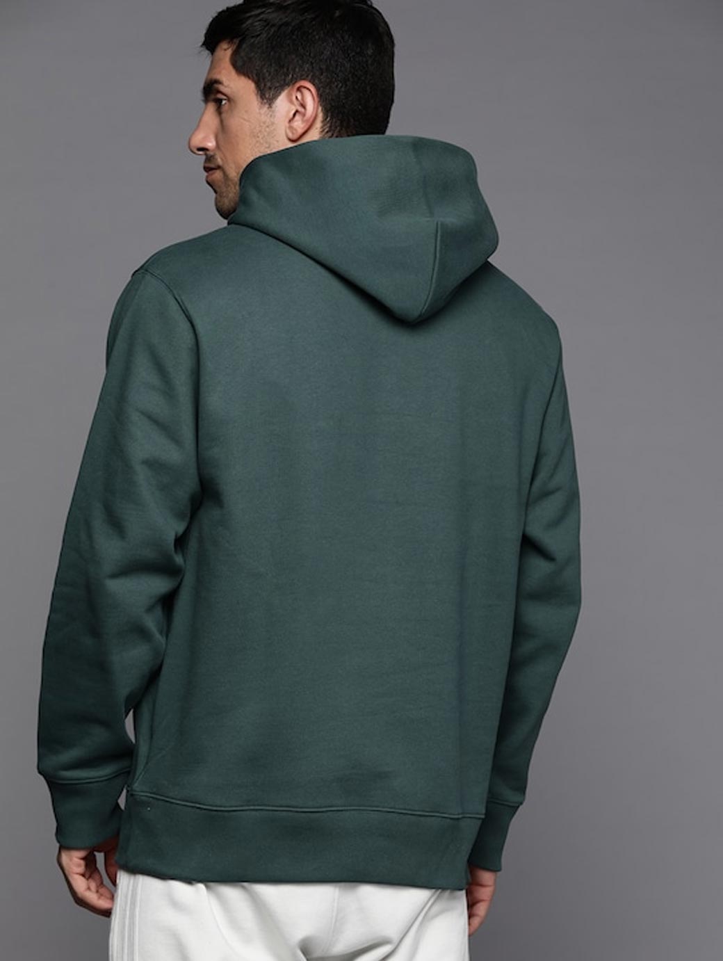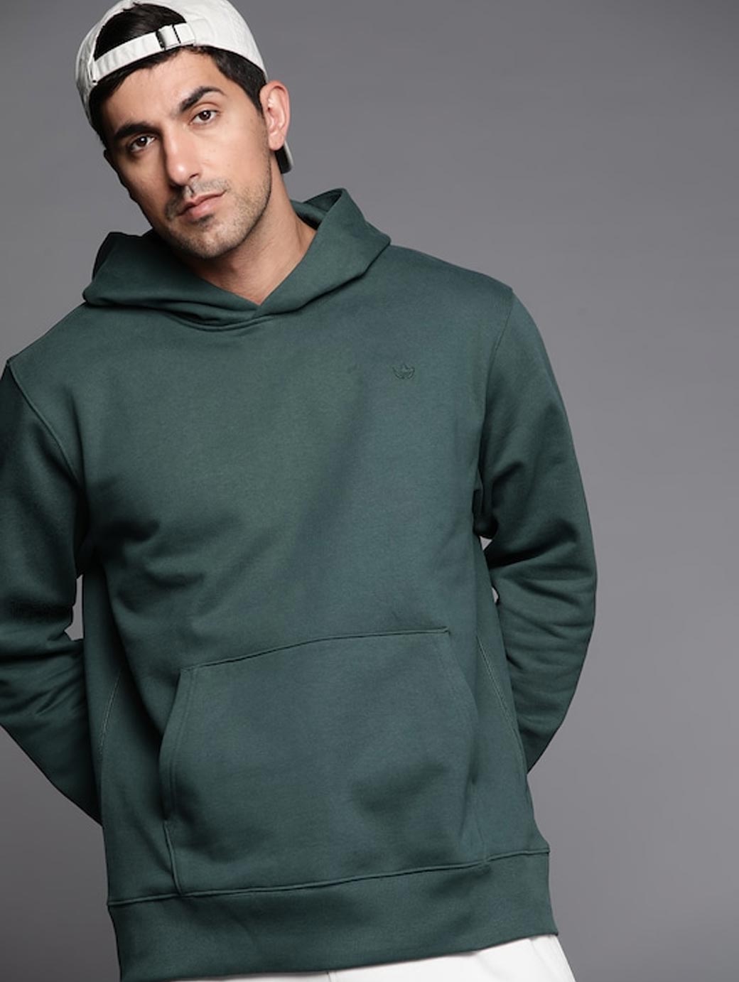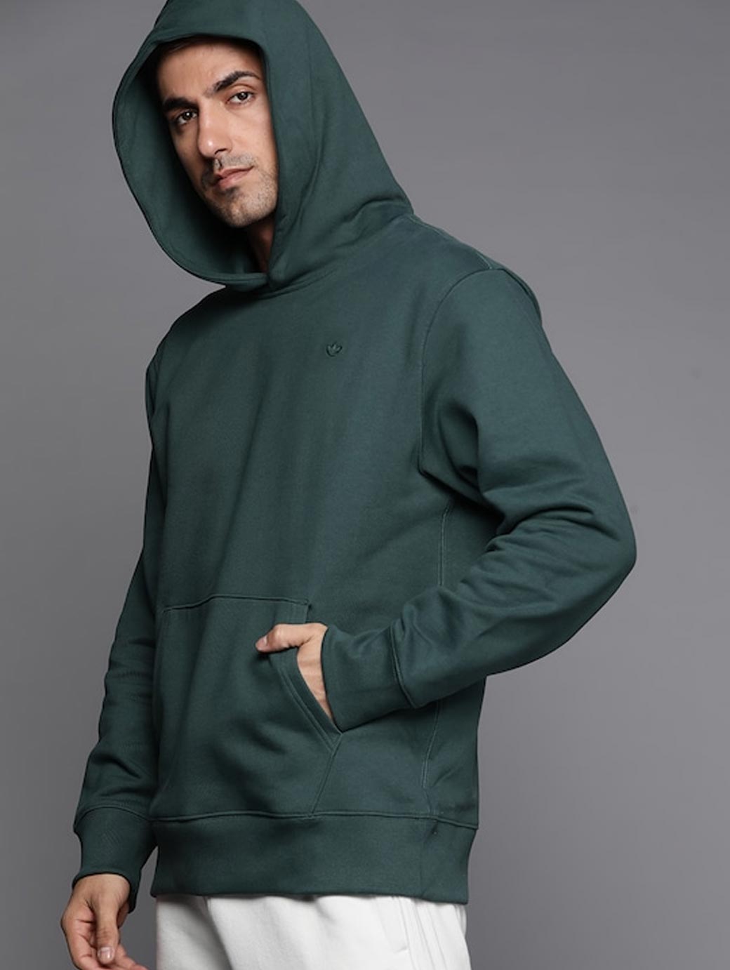 Green solid sweatshirt has a hooded, 2 kangaroo pocket pockets, long sleeves, closure, ribbed hem Warranty: 3 months Warranty provided by Brand Owner / Manufacturers