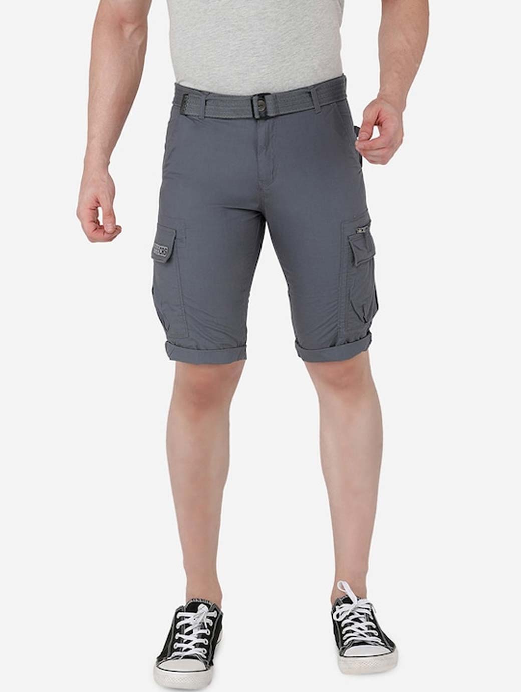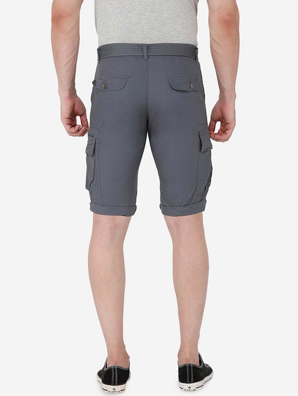 Men Grey Cargo Pure Cotton Shorts with Belt