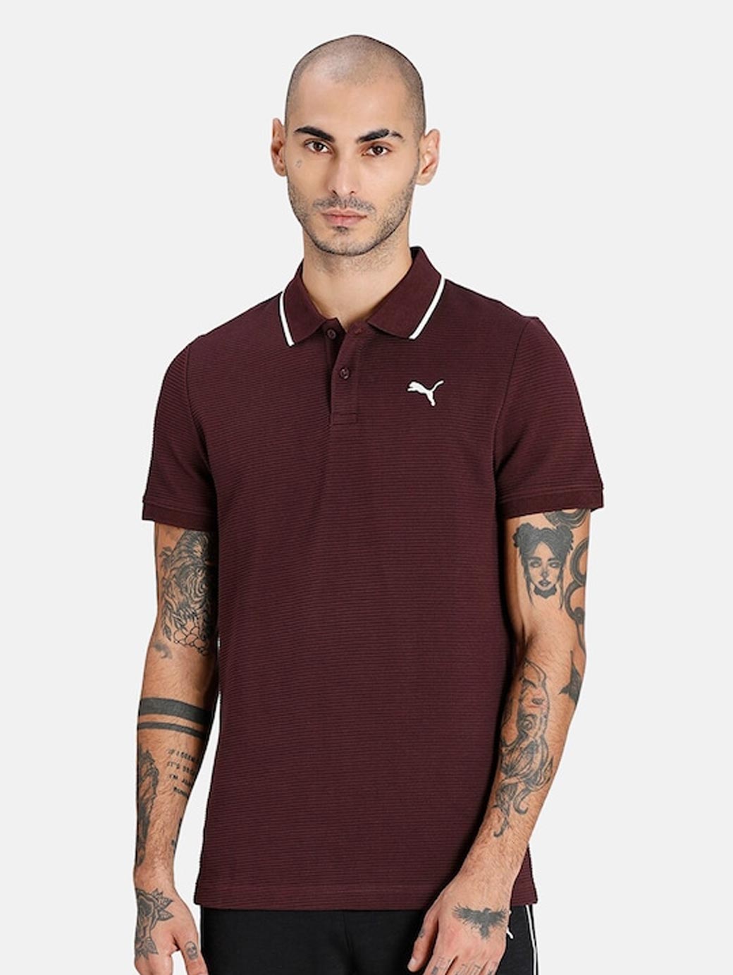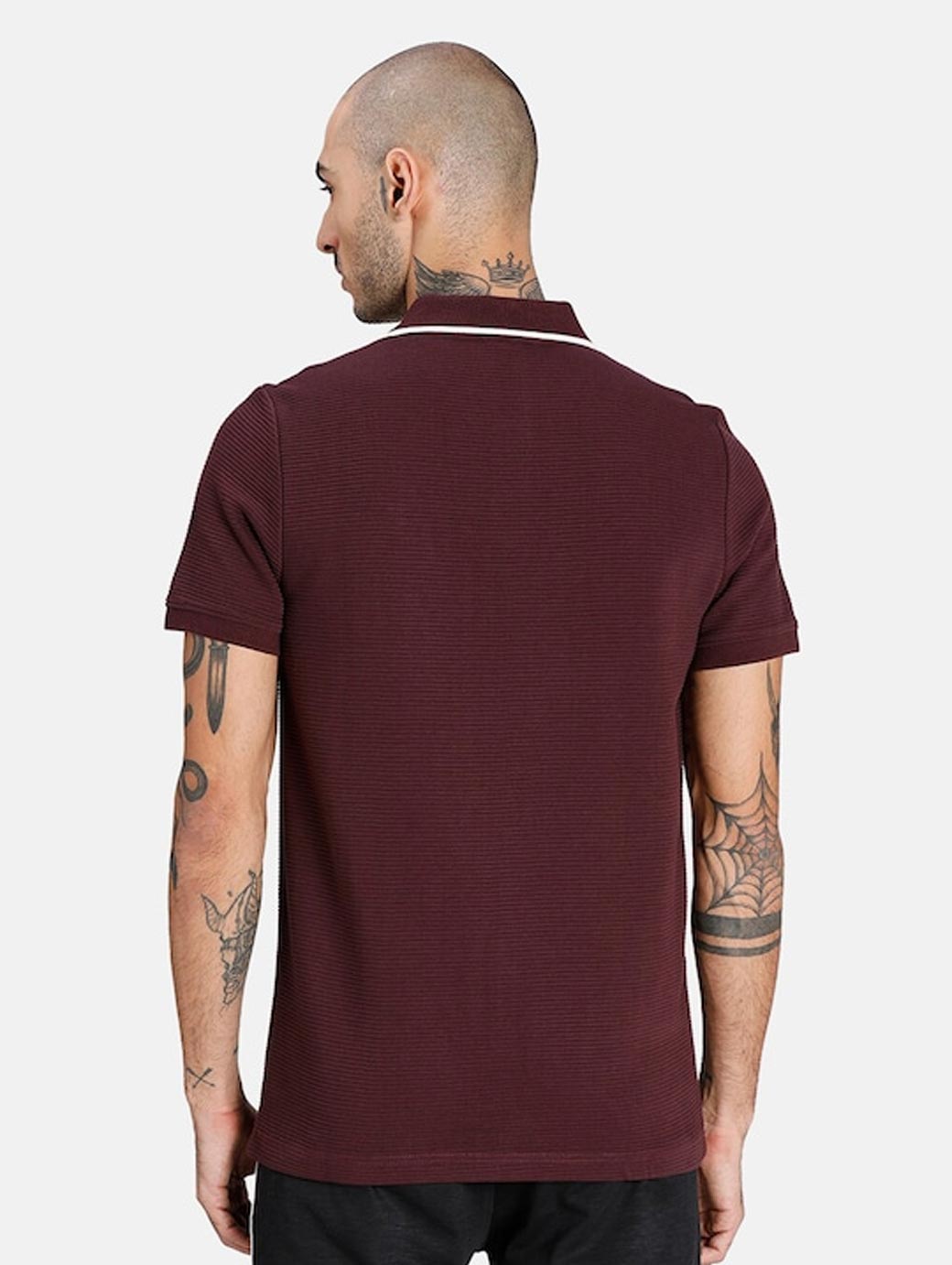 Maroon Tshirt for men Solid Regular length Polo collar Short, regular sleeves Knitted cotton fabric