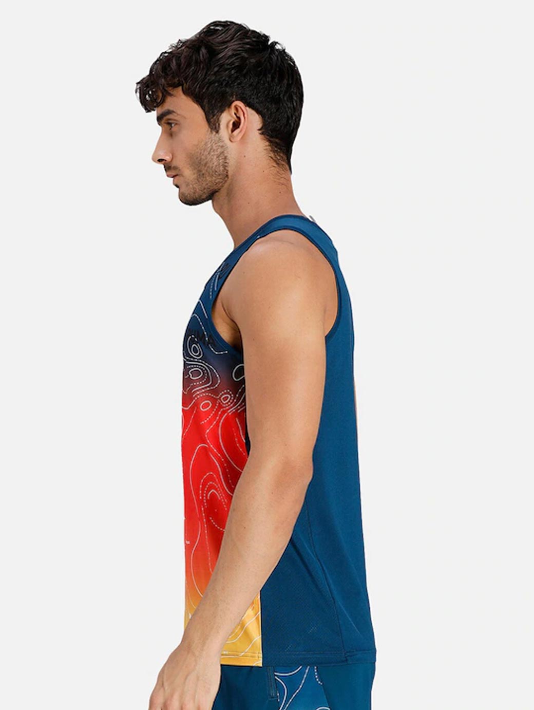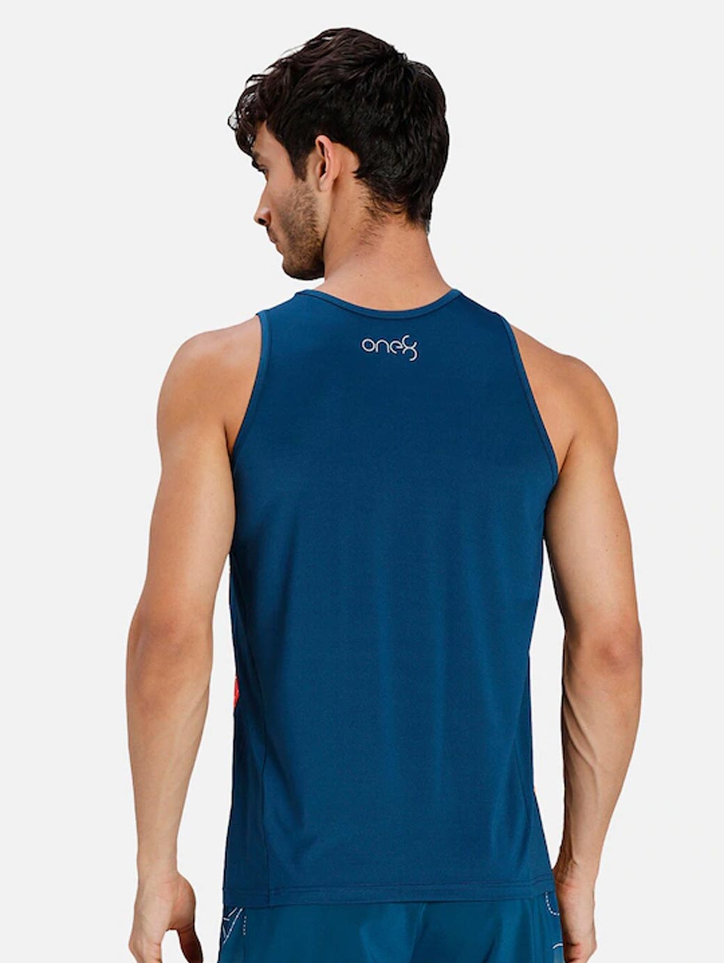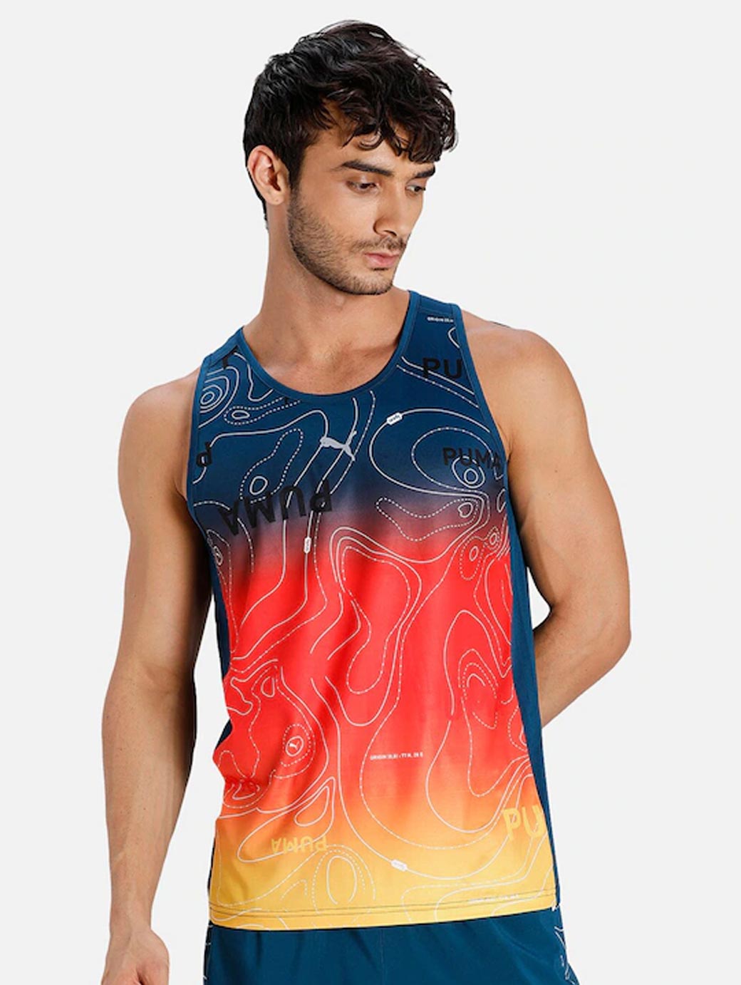 Navy blue & coral colourbloacked Tank Top Innerwear Vest, of Crew neck, Sleeveless, PUMA Cat logo at chest, one insignia at the back, Flatlock stitching for for anti-friction proof, making it great for movement