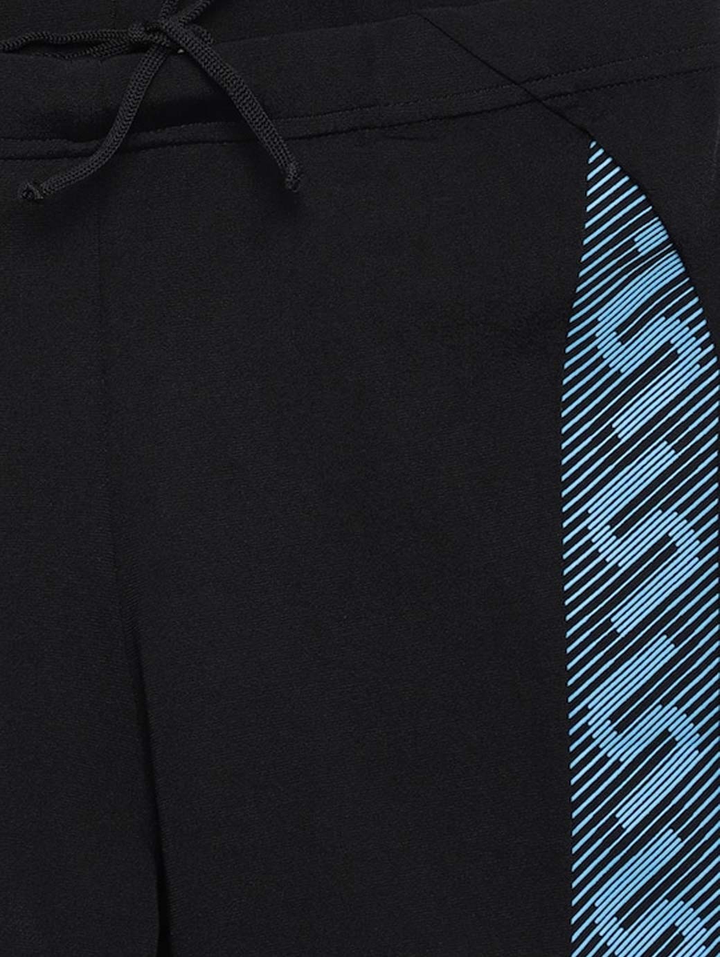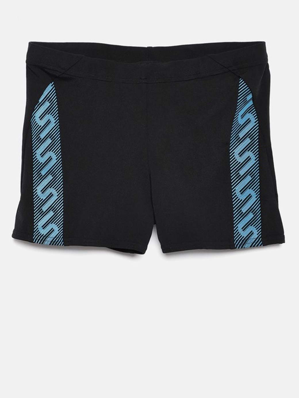 A pair of black knitted mid-rise swim shorts with Endurance Plus technology, has an elasticated waistband with drawstring fastening 100% chlorine-resistant Retains its shape swim after swim 20 times more fade resistant Soft, comfortable Quick drying