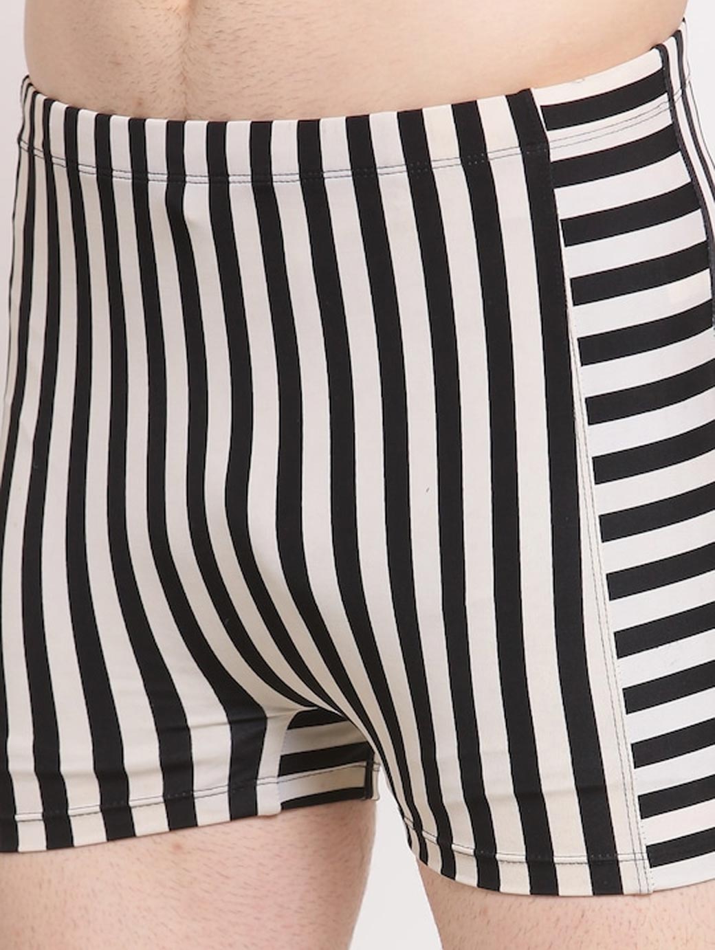 Men White & Black Striped Comfort-Fit Swim Bottoms