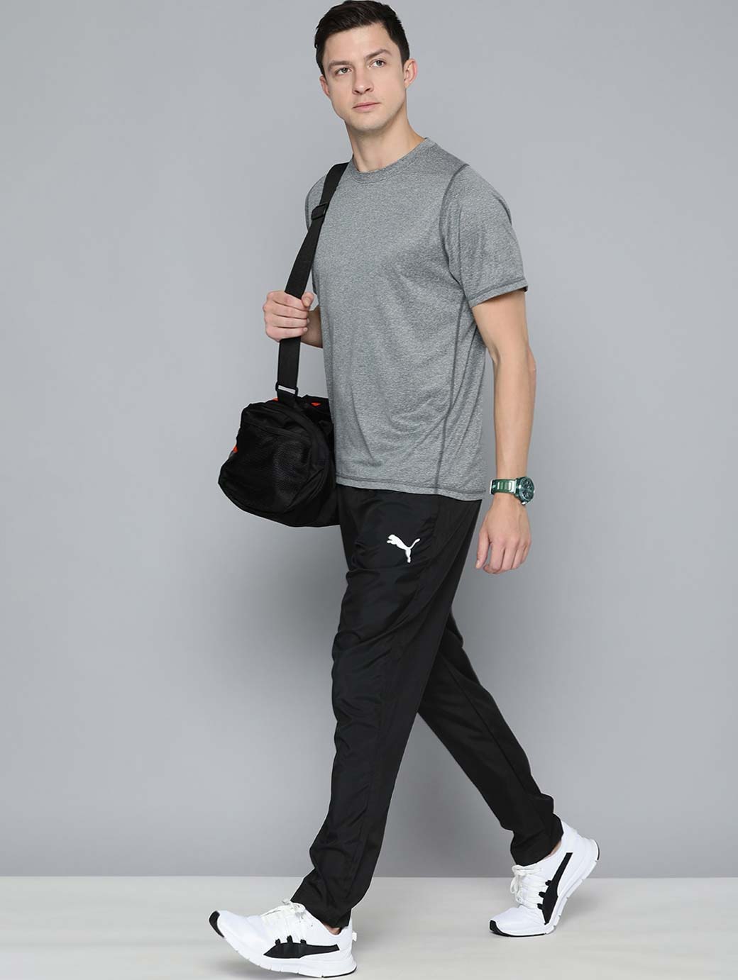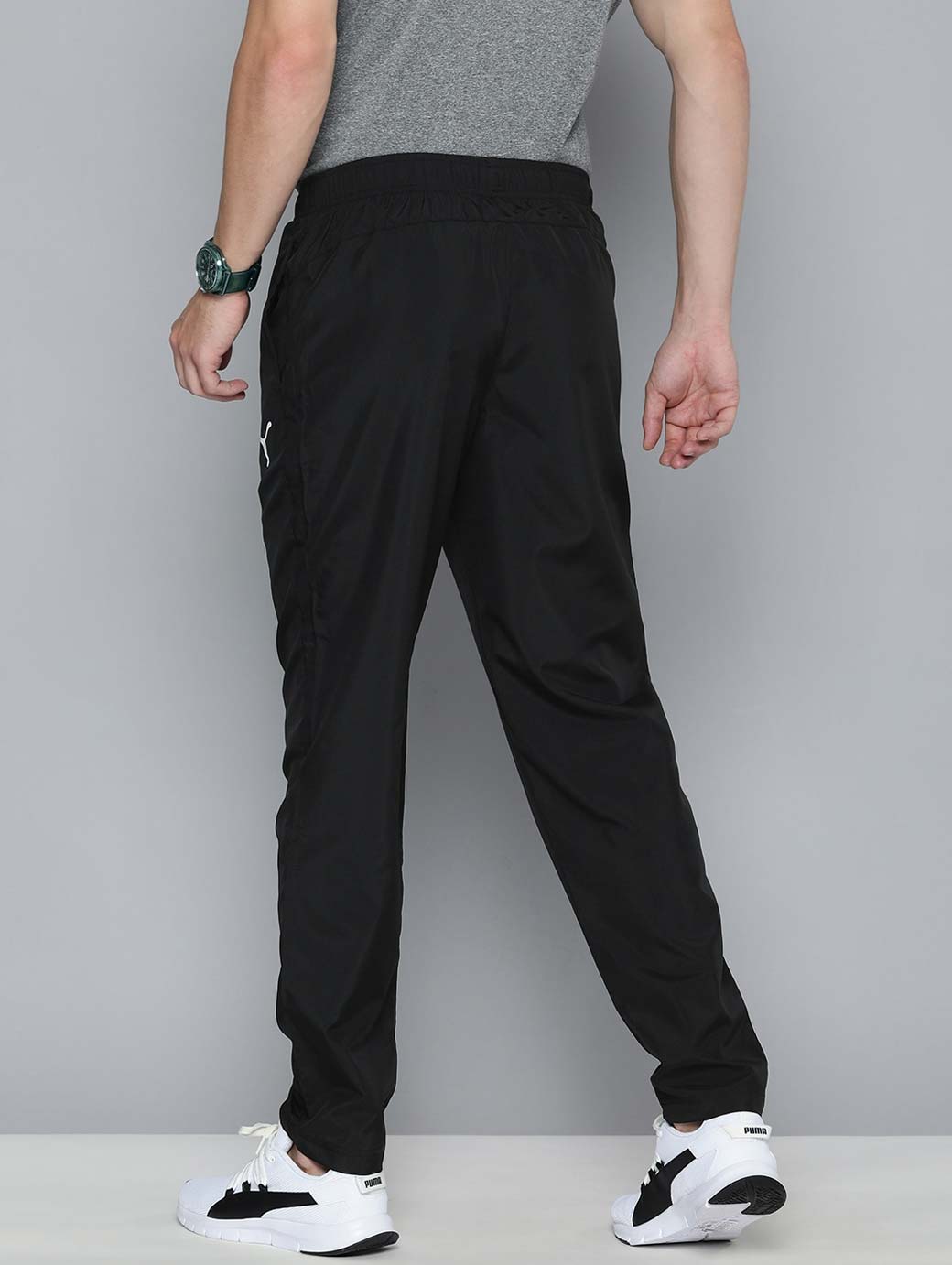 Cuffed woven track pants from PUMA will help you get the best out of your training and leisure activities. Also available in shorter lengths. DETAILS : Black brand logo printed track pants Elasticated waistband with drawcord Cuffs with inner adjustable elasticated drawcord Side-seam pockets Breathable mesh lining