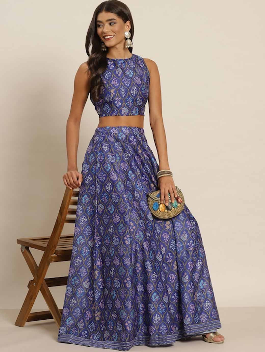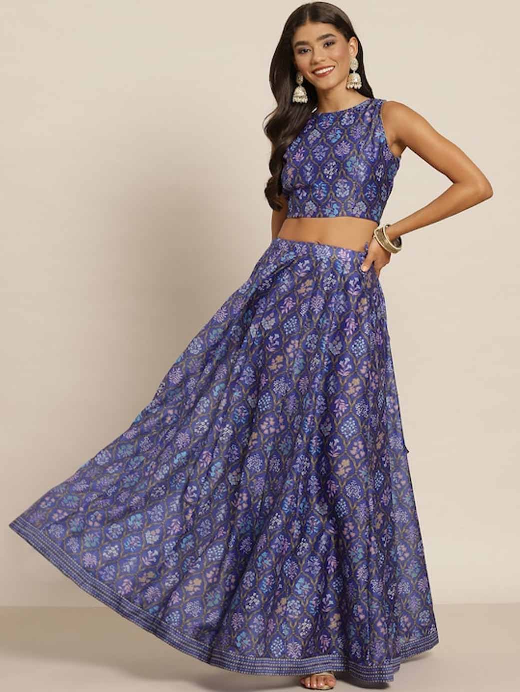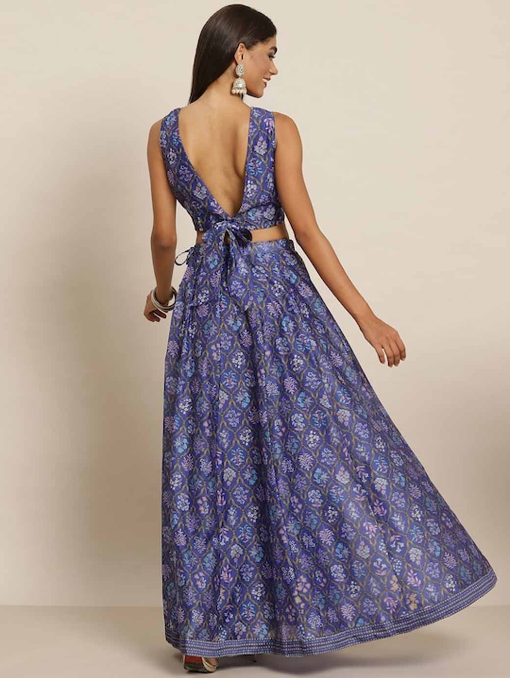 Purple & Blue Printed Ready to Wear Lehenga & Choli