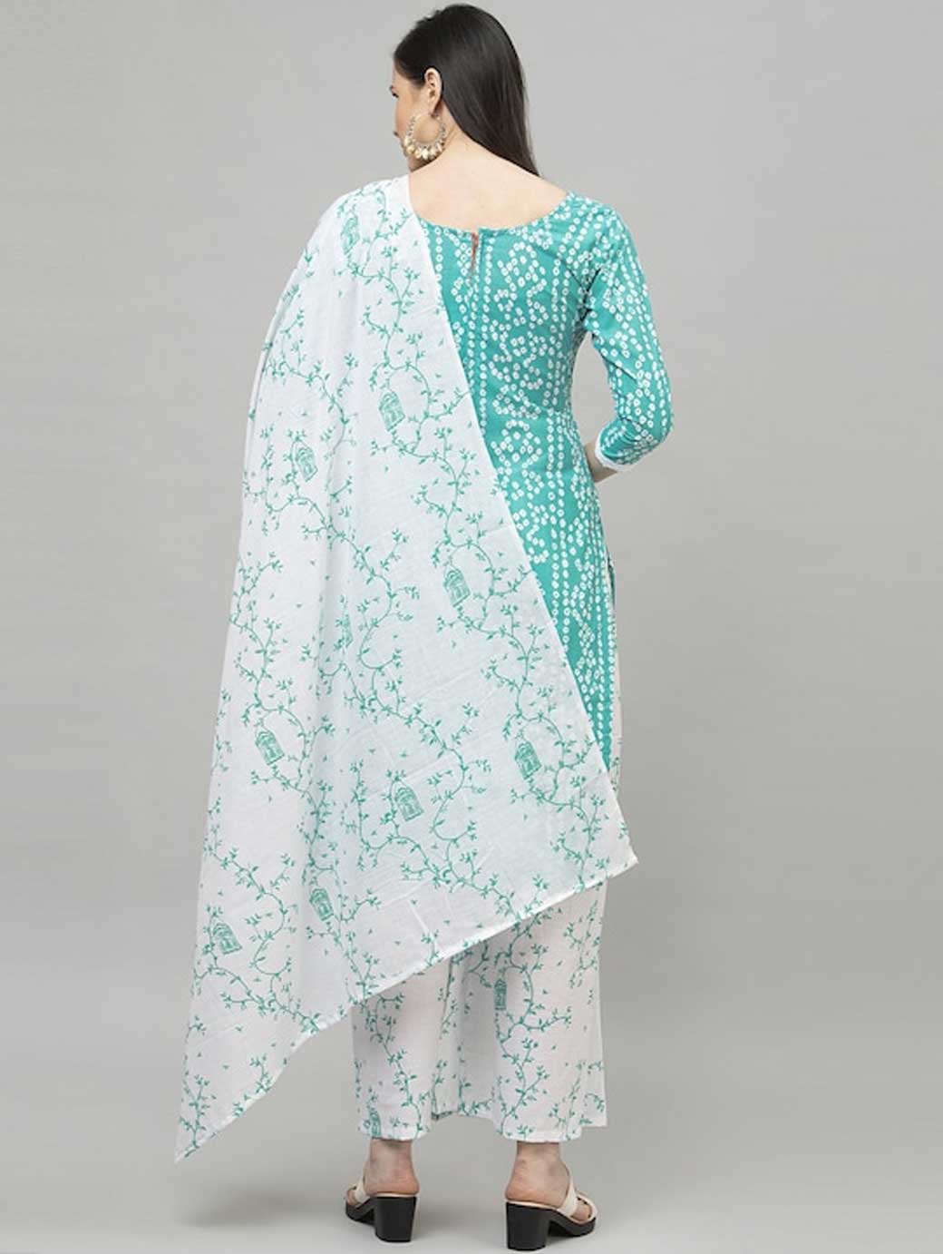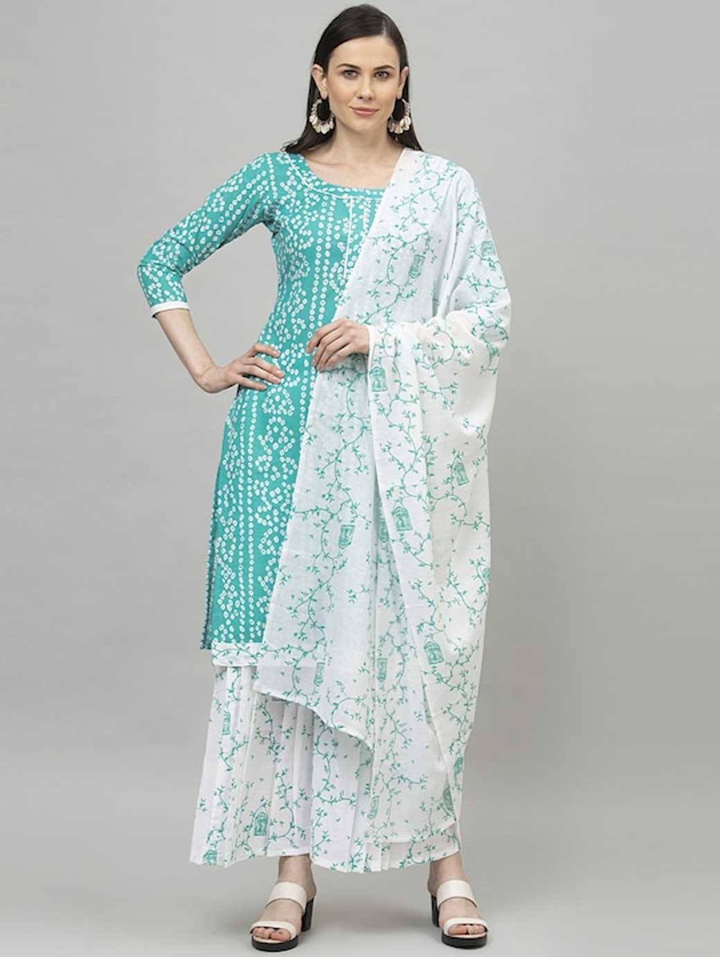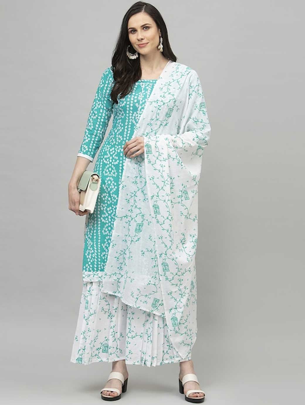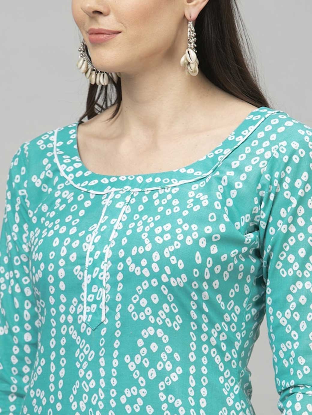 Turquoise Blue and white Bandhani printed kurta fabric
