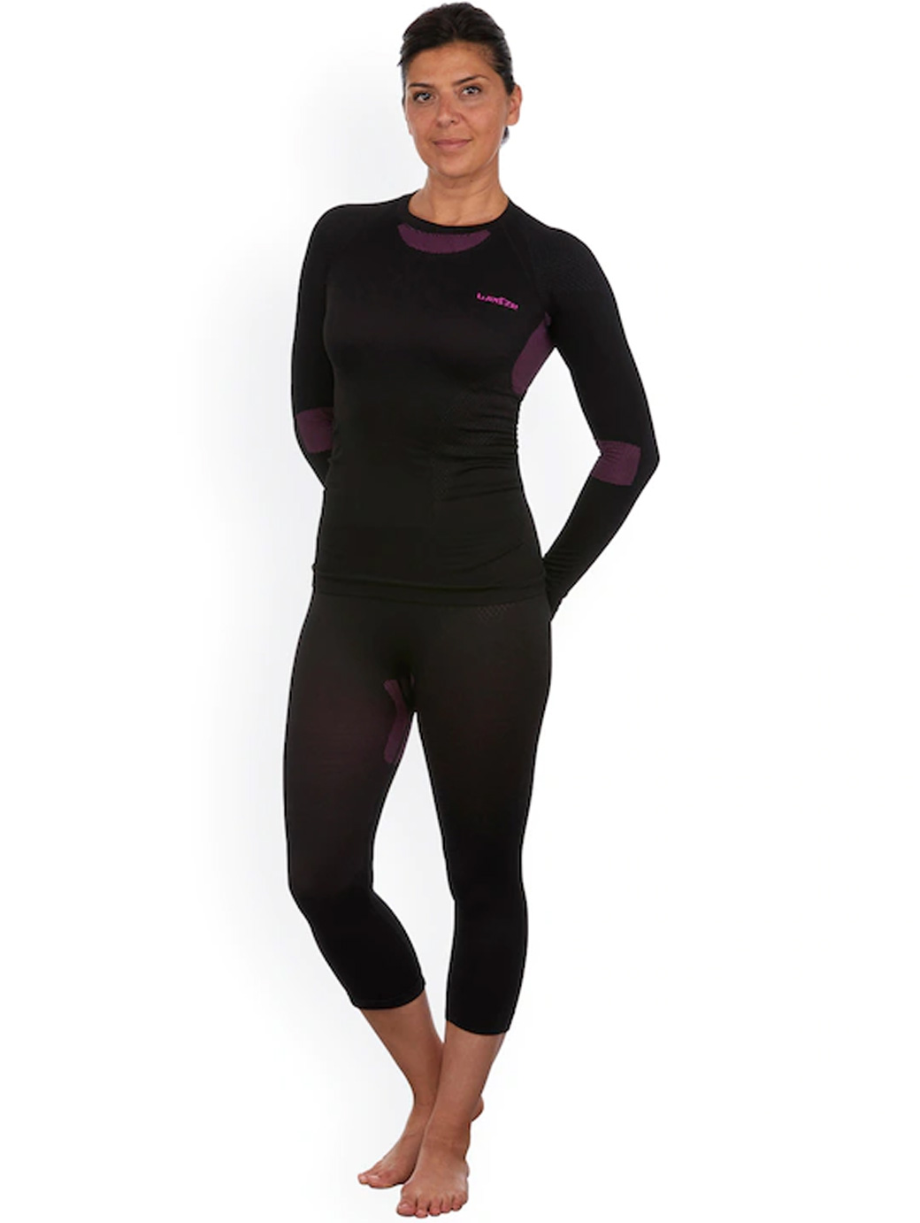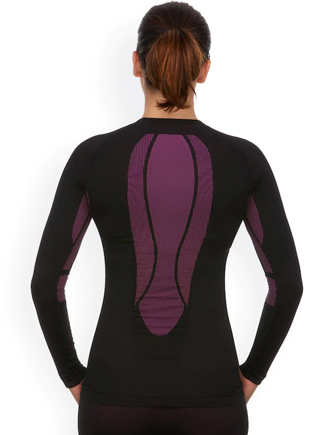 Black solid thermal top, has round neck, long sleeves
