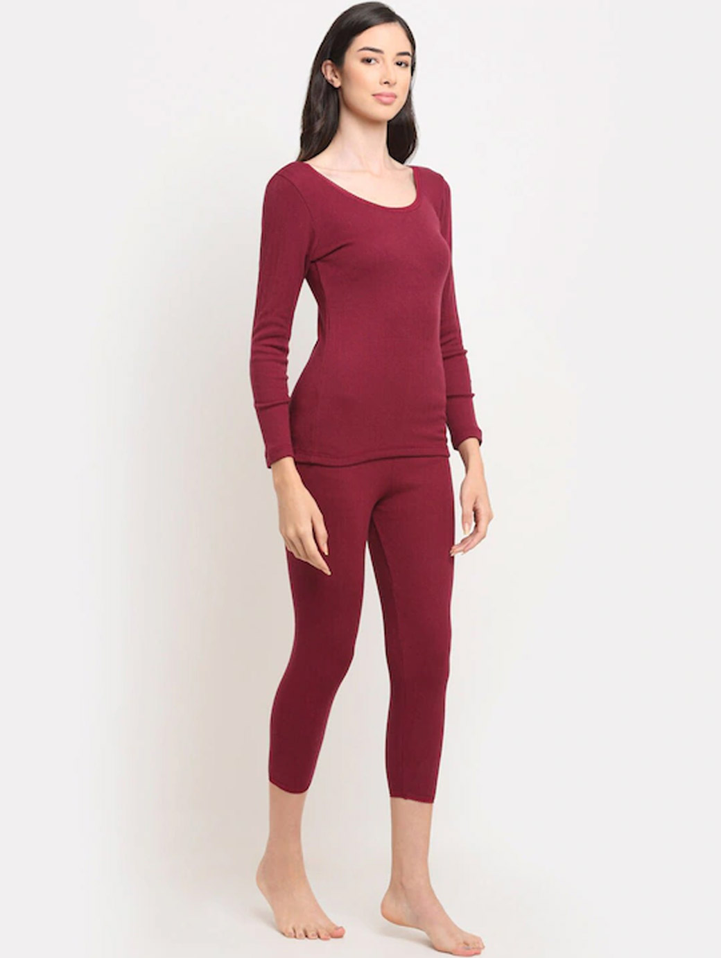 Maroon Self-Design three-fourth thermal bottom, has elasticated waistband with slip-on closure