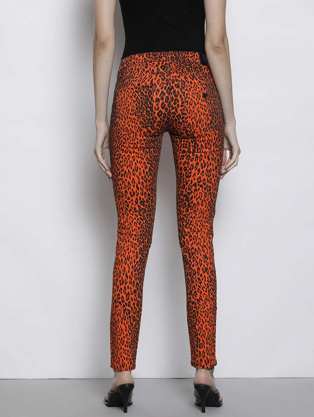 Women Red & Black Skinny Fit Animal Printed Stretchable Jeans